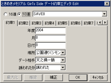 PS2 ときめきメモリアル Girl's Side デート約束エディタ Ver1.0[戻る]