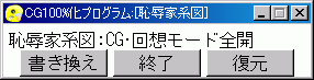 「恥辱家系図」(ふくろう)をボタン一発で、 EXTRA全開にするプログラムです。 CG鑑賞とシーン鑑賞が全開になります。