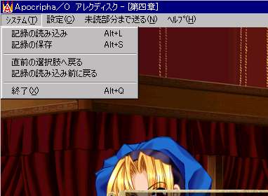Apocripha/0 両ディスク:システムメニューが使える裏技[戻る]