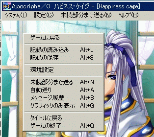 Apocripha/0 FANBOX Happiness Cage:各種メニューを表示させる裏技[戻る]